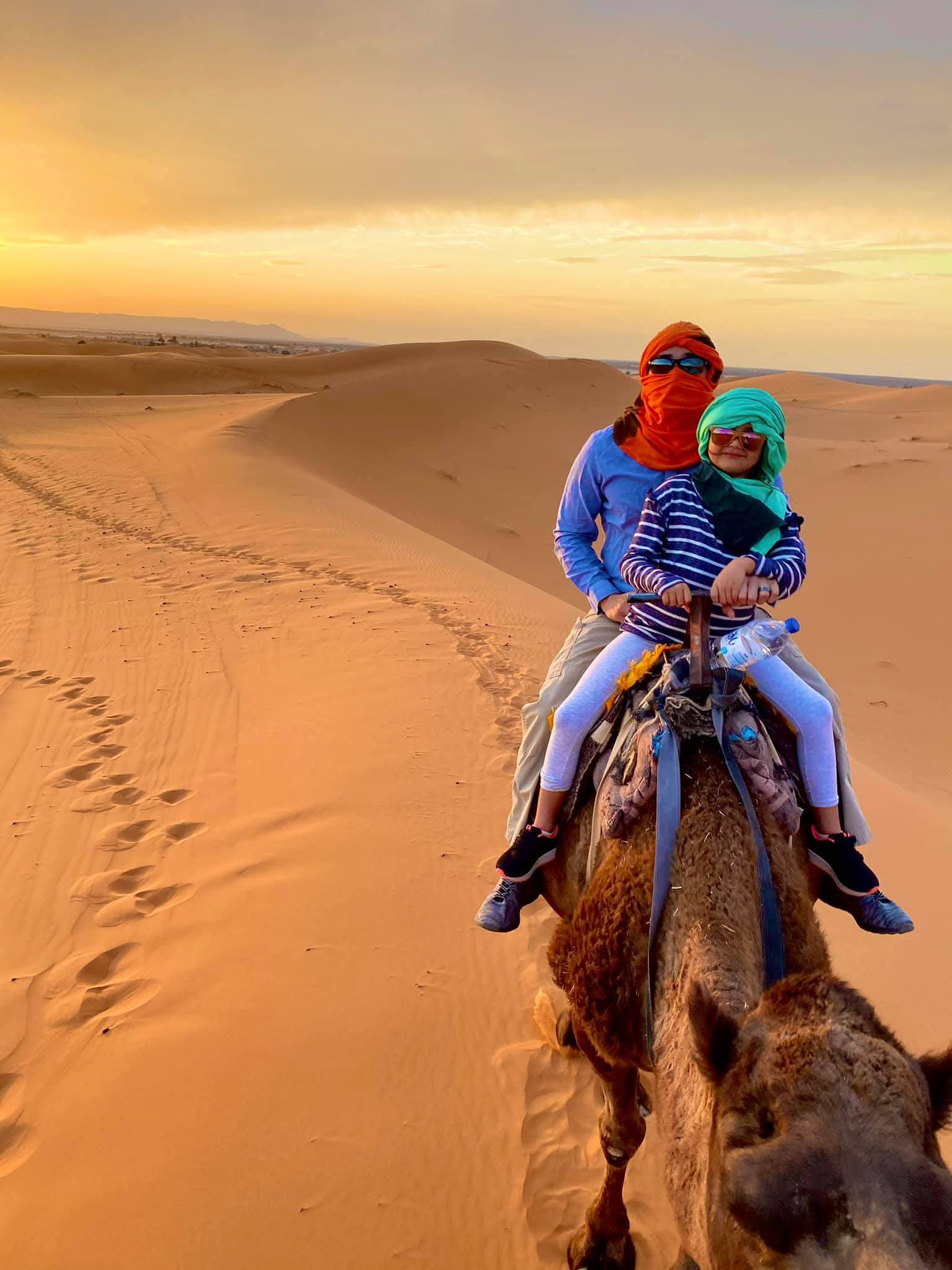 Walk through the gorges and palm groves at leisure. After lunch, continue to the palm groves of Tinjdad and Erfoud. The tour will then continue to Merzouga, where you will enjoy a camel ride through the fascinating dunes of Erg Chebbi. Pause to watch the beautiful sunset and see the sand dunes shift like moving sculptures in the form of draperies. Watch as the colors vary according to the intensity of the light, and see how they act like the living walls of the desert, the highest reaching a magnificent (150 m). Spend a magical night under the stars in nomadic tents.