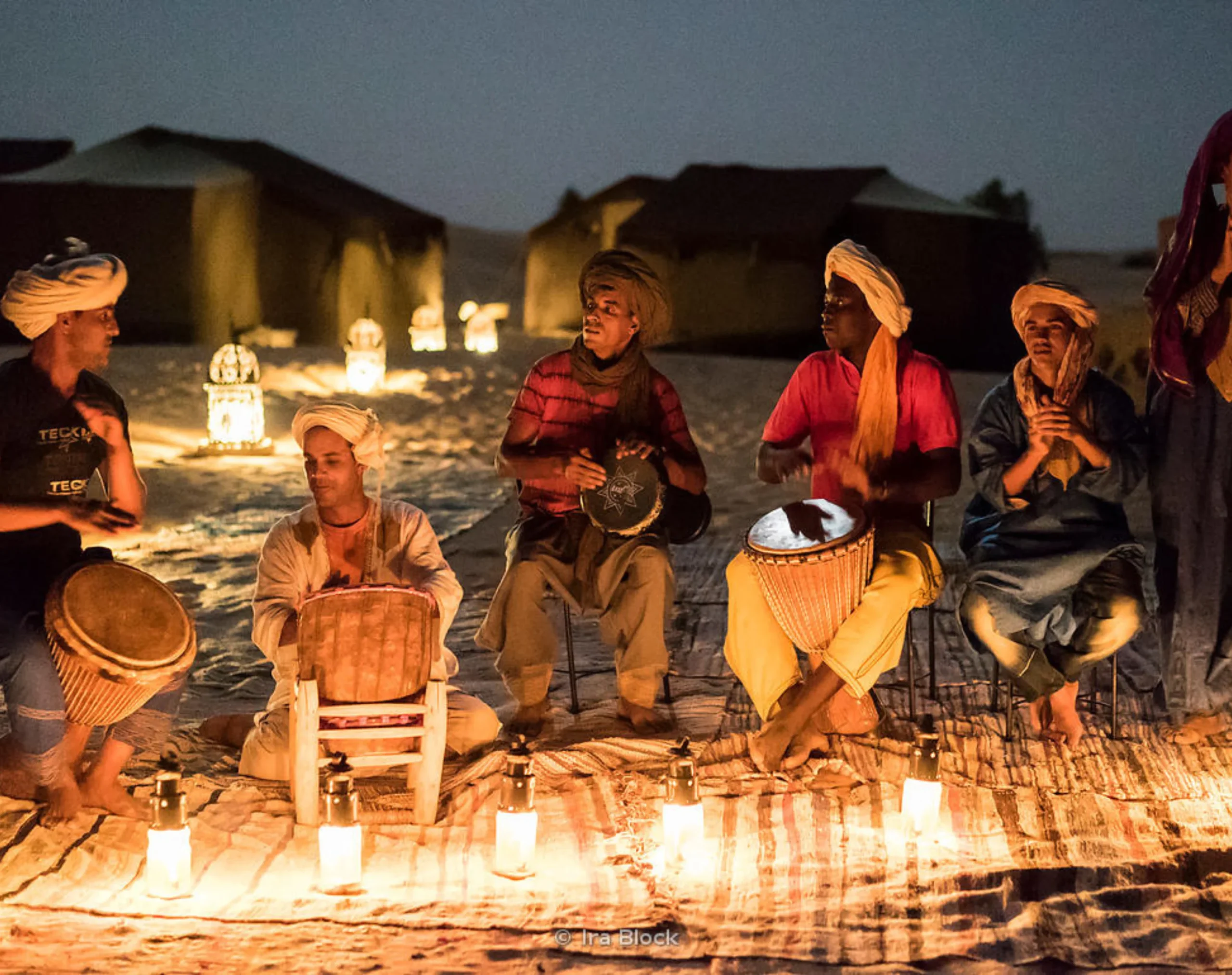 Commence the trip in the morning, but today we are not leaving Merzouga. We’ll rather visit the area along with the “Gnaoua” village -Khamlia-. Meet Gnaoua people that are known for their unique type of music where drums are an essential tool they are using. Experience climbing in the top of the camels to ride over Erg Chebbi camp at the high dunes watching the sunset and getting ready to spend a night in the camp yurts.